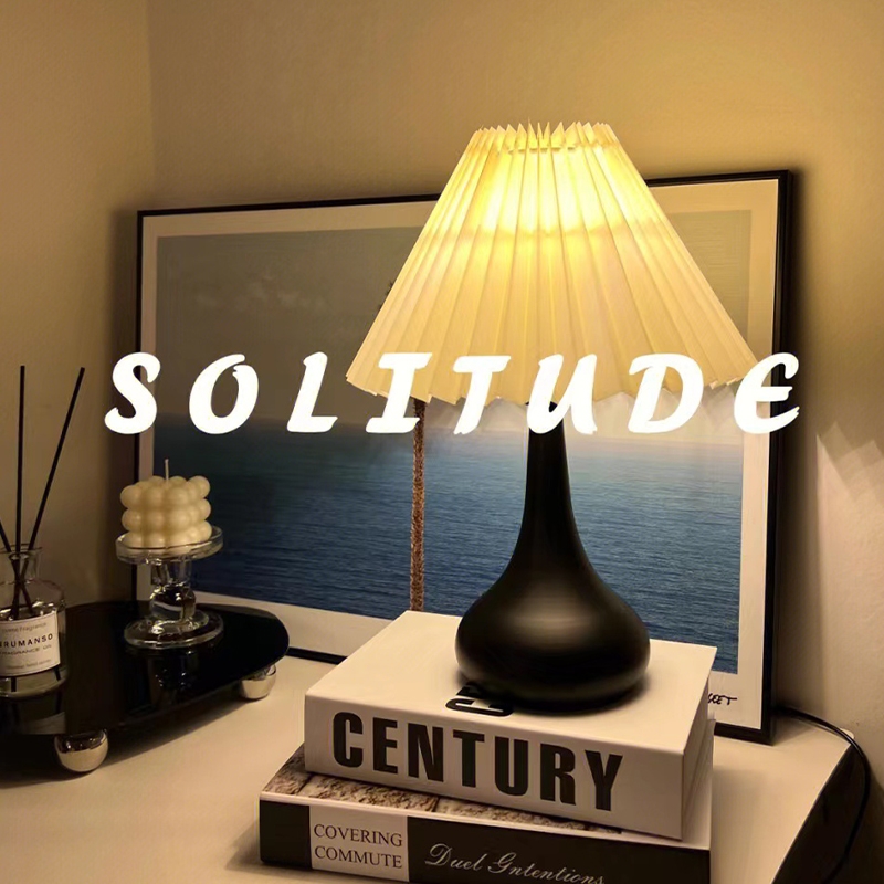 复古台灯床头灯卧室中古小夜灯百褶简约现代高级感美式装饰氛围感