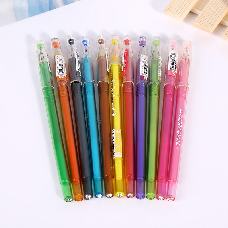 彩色中性笔钻石笔少女心可爱签字笔全针管12色水笔小清新学生用手账笔绘画笔多色水性笔创意文具用品