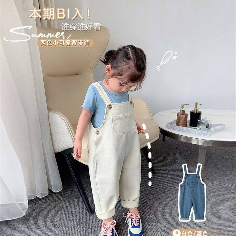 woobaby儿童牛仔背带裤男女童夏新款小童宝宝裤子直筒休闲长裤