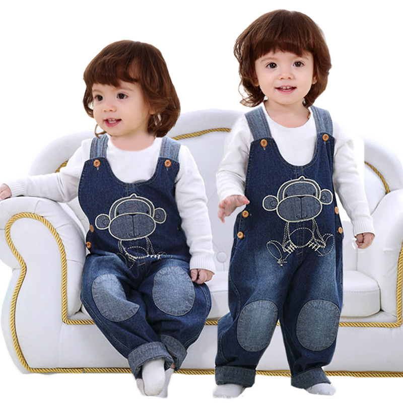 宝宝牛仔裤背带裤春季男宝女宝长裤幼儿连体衣服夏季婴儿连体裤子