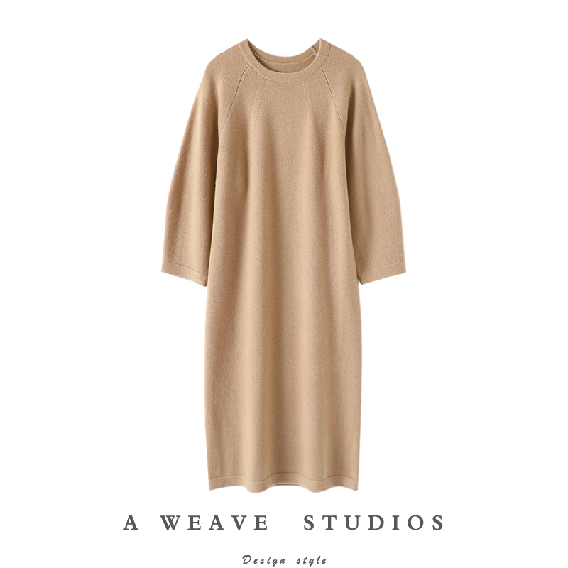 高定系列!惊艳时光!加厚羊绒衫女中长款纯羊绒毛衣圆领连衣裙子