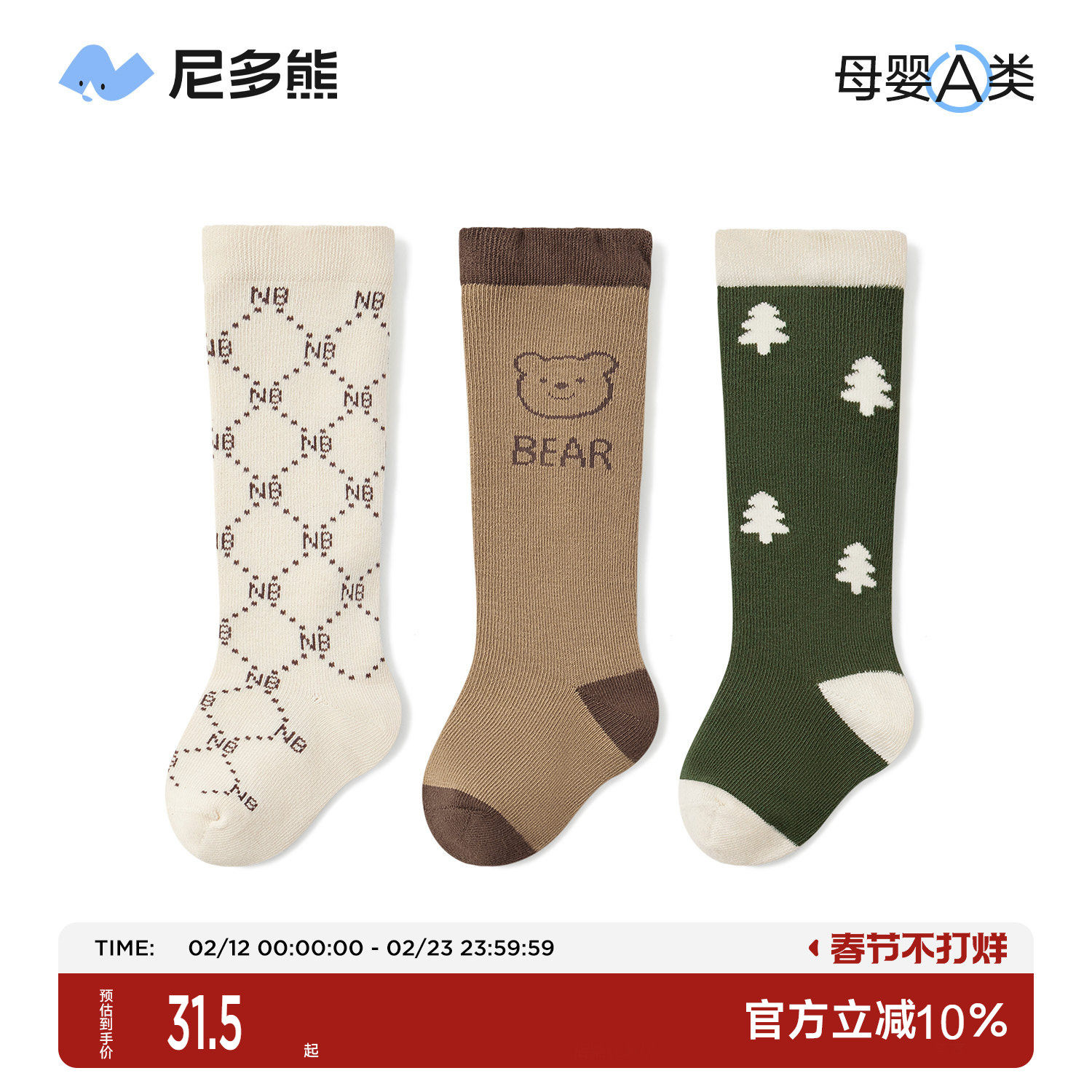 尼多熊宝宝长筒袜秋冬棉袜婴儿长袜松口不勒腿儿童袜子春秋不过膝
