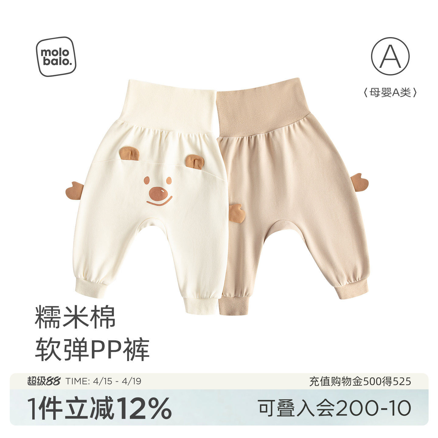 chao软糯弹力~婴童宝宝高腰护肚pp裤 春男女童大裆裤可开档屁屁裤