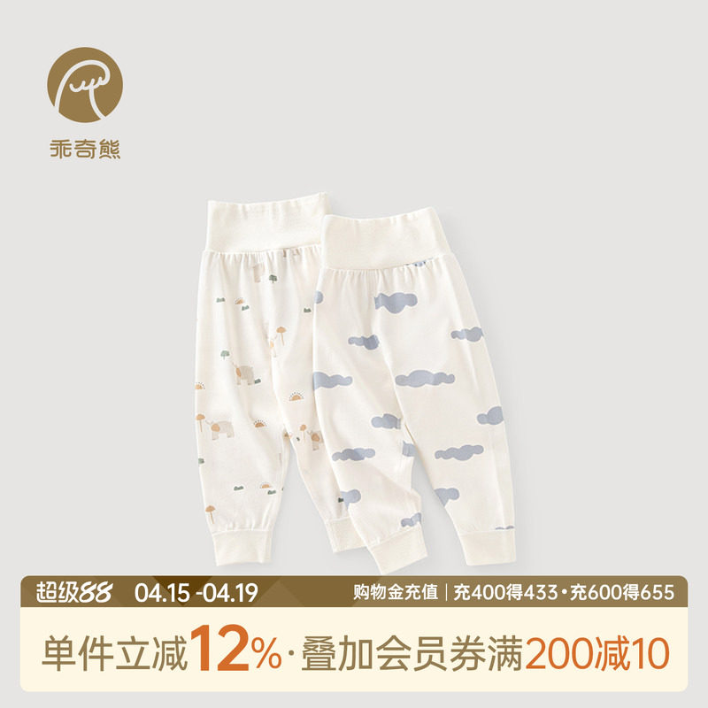 乖奇熊婴幼儿纯棉高腰护肚裤春秋季无骨居家长裤宝宝睡裤休闲裤子