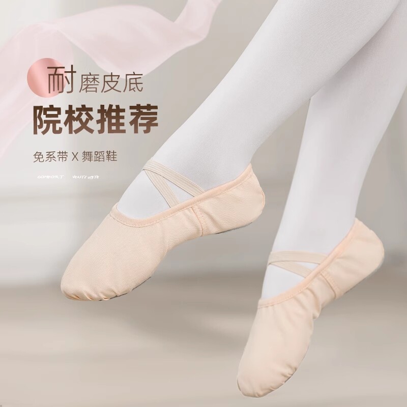 舞蹈鞋儿童女中国舞成人芭蕾舞专用跳舞鞋肉色软底免系带练功古典