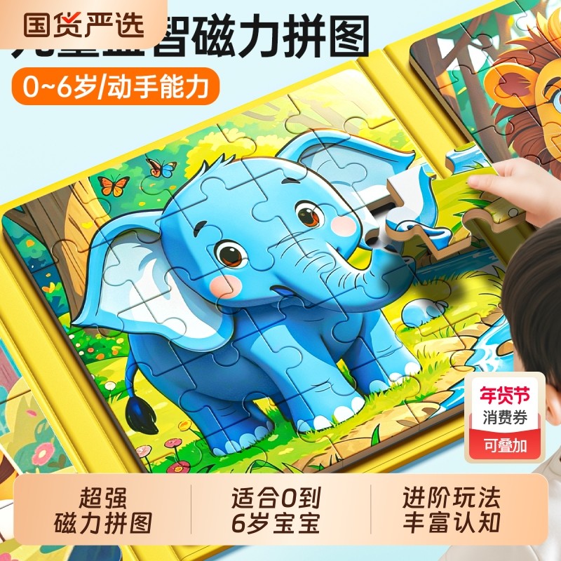 儿童拼图3到6岁益智磁力玩具蒙氏早教开发智力动脑宝宝专注力训练