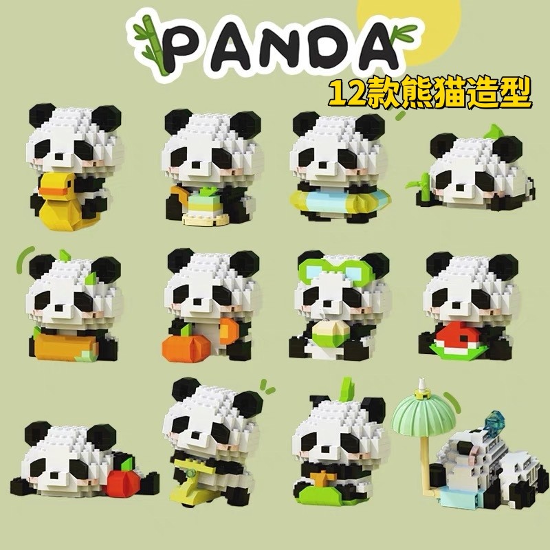 大熊猫花花微小颗粒积木益智拼装玩具男女孩系列儿童拼图节日礼物