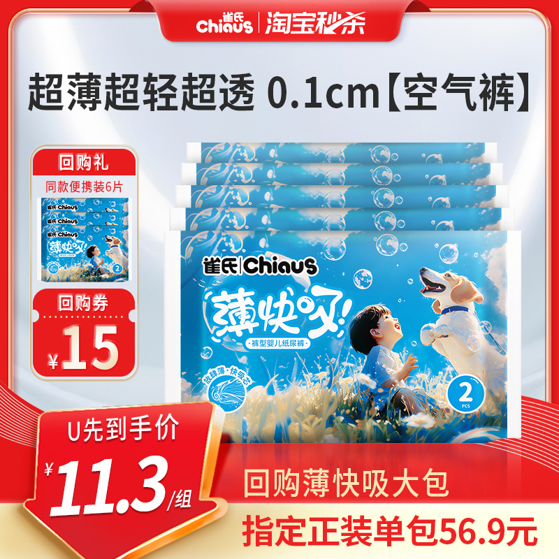 【淘秒】雀氏薄快吸婴儿纸尿裤S-3XL超薄透气宝宝尿不湿拉拉裤