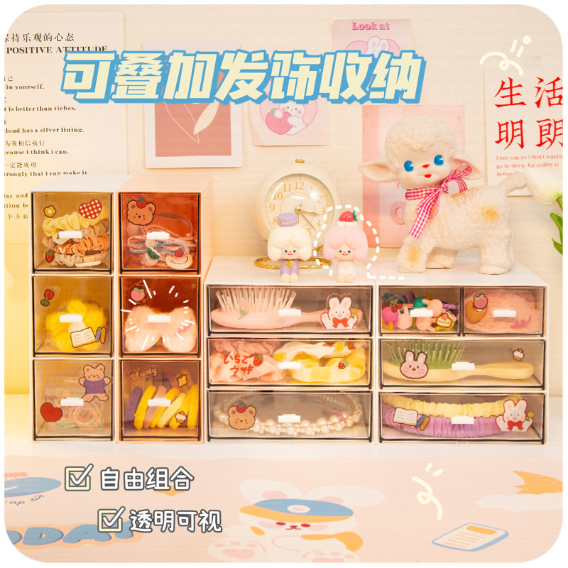 发饰收纳盒桌面儿童头饰皮筋发夹小饰品床头柜置物架抽屉式首饰盒