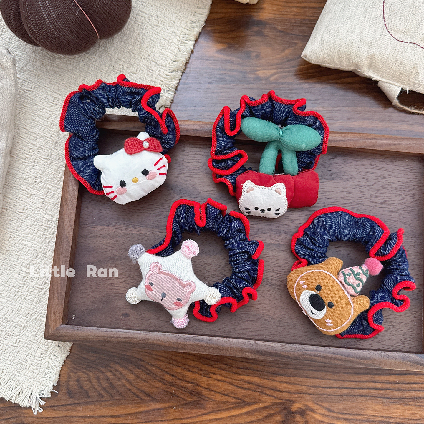 Little Ran 可爱卡通KT猫发圈女童牛仔荷叶边发绳儿童头饰皮筋