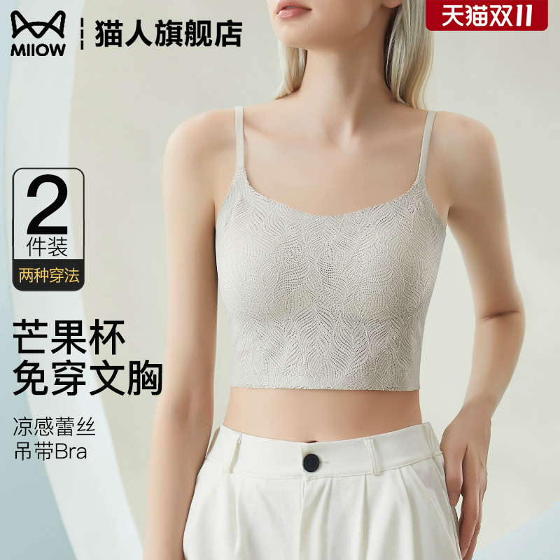 猫人吊带背心女小胸美背一体式带胸垫无痕内衣薄款夏打底内搭上衣