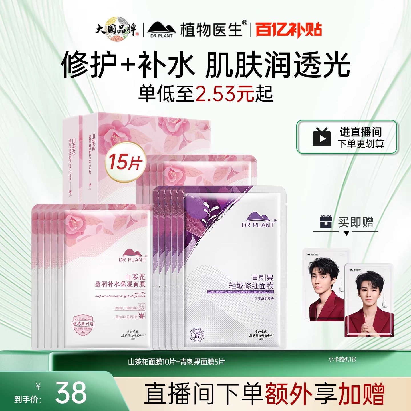 【百亿补贴】植物医生面膜官方正品补水修护白茶山茶花面膜护肤女