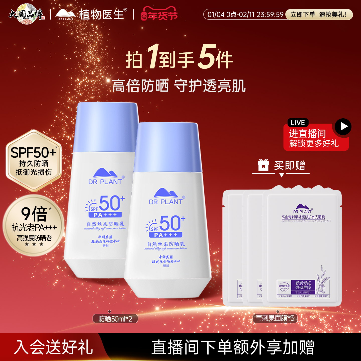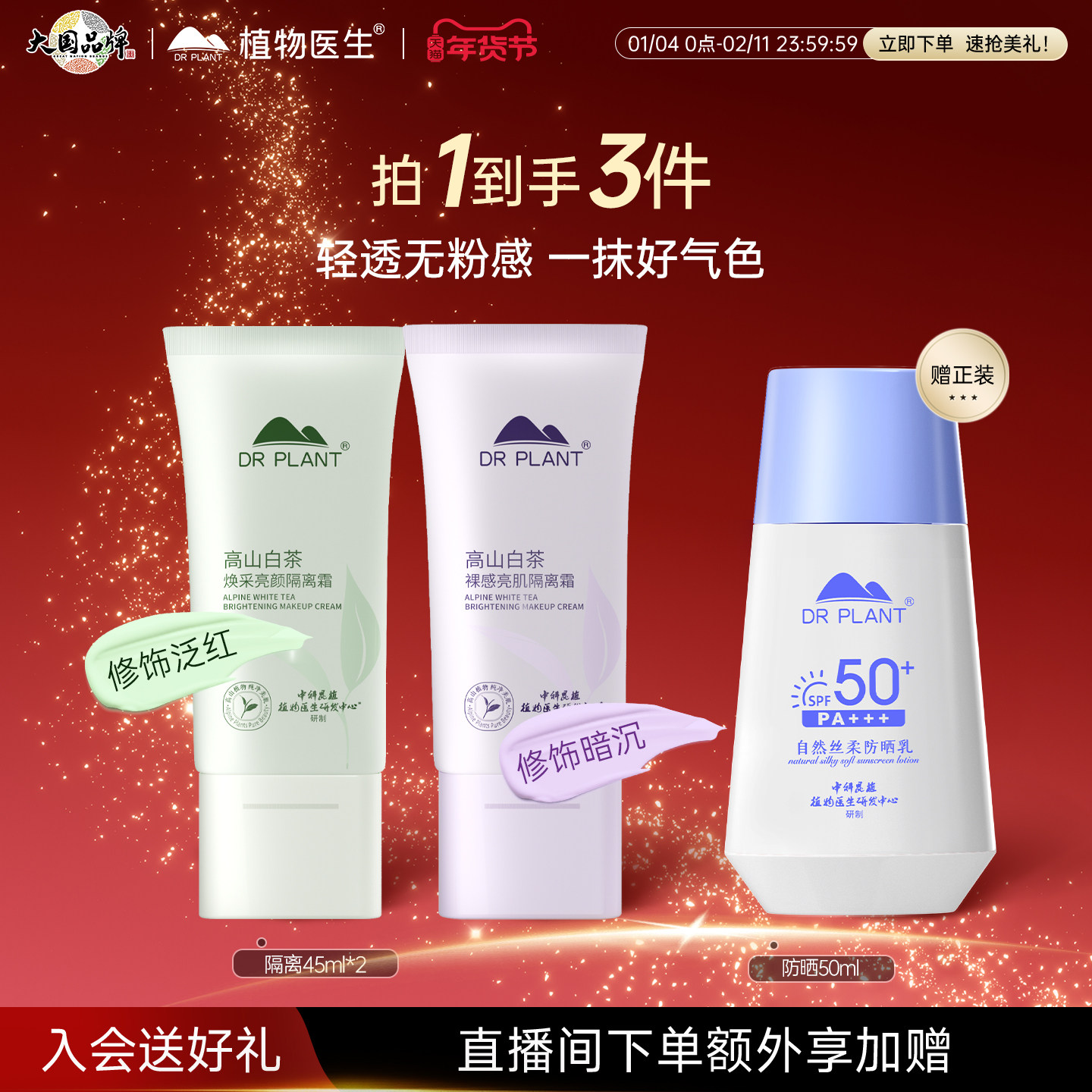 【新年礼物】植物医生官方美白淡斑防晒霜防汗物理高倍防晒乳正品