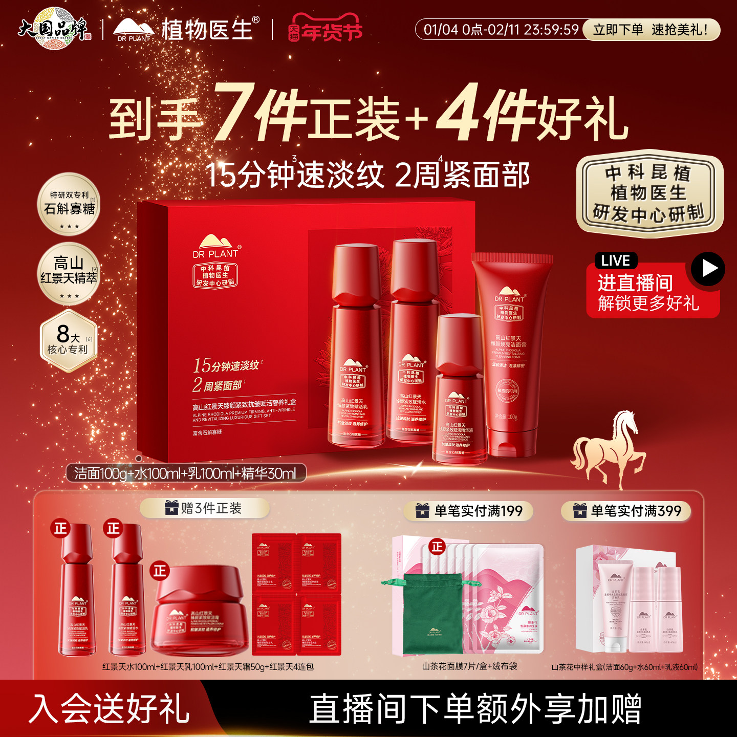 【新年礼物】植物医生官方红景天抗皱紧致水乳护肤品套装化妆正品