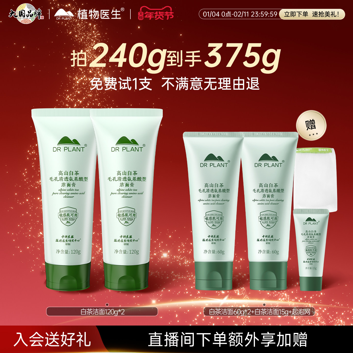 植物医生白茶洗面奶女深层清洁收缩毛孔氨基酸洁面乳控油官方正品