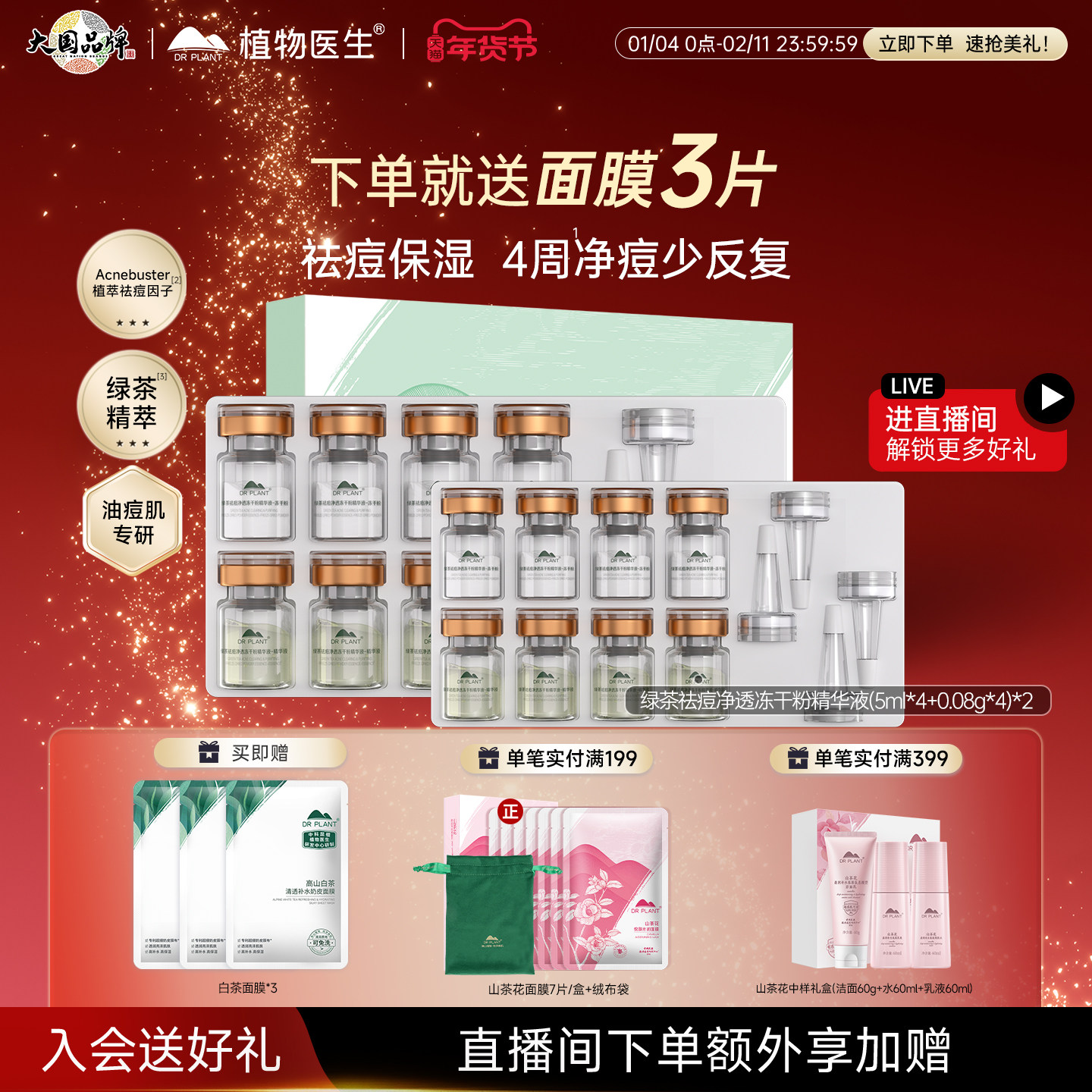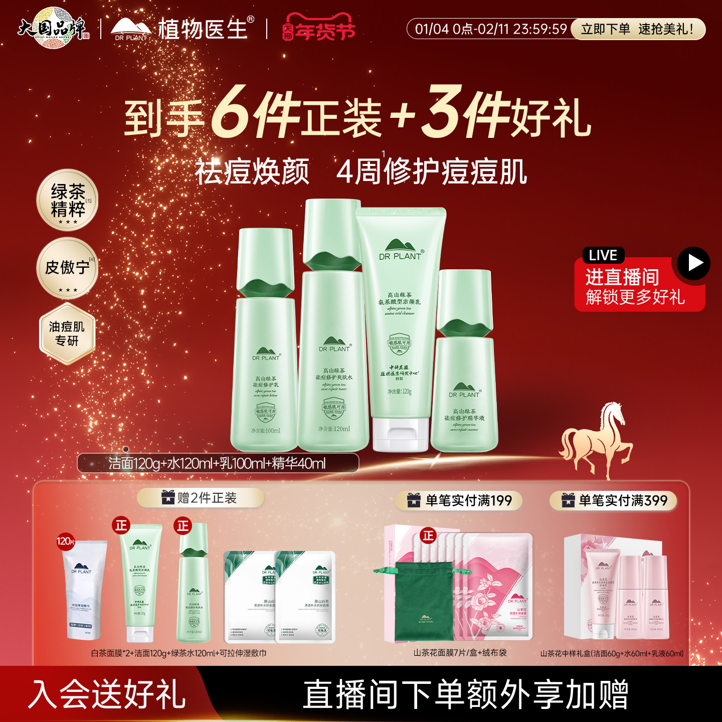 【新年礼物】植物医生官方旗舰店正品绿茶祛痘控油水乳套装护肤品