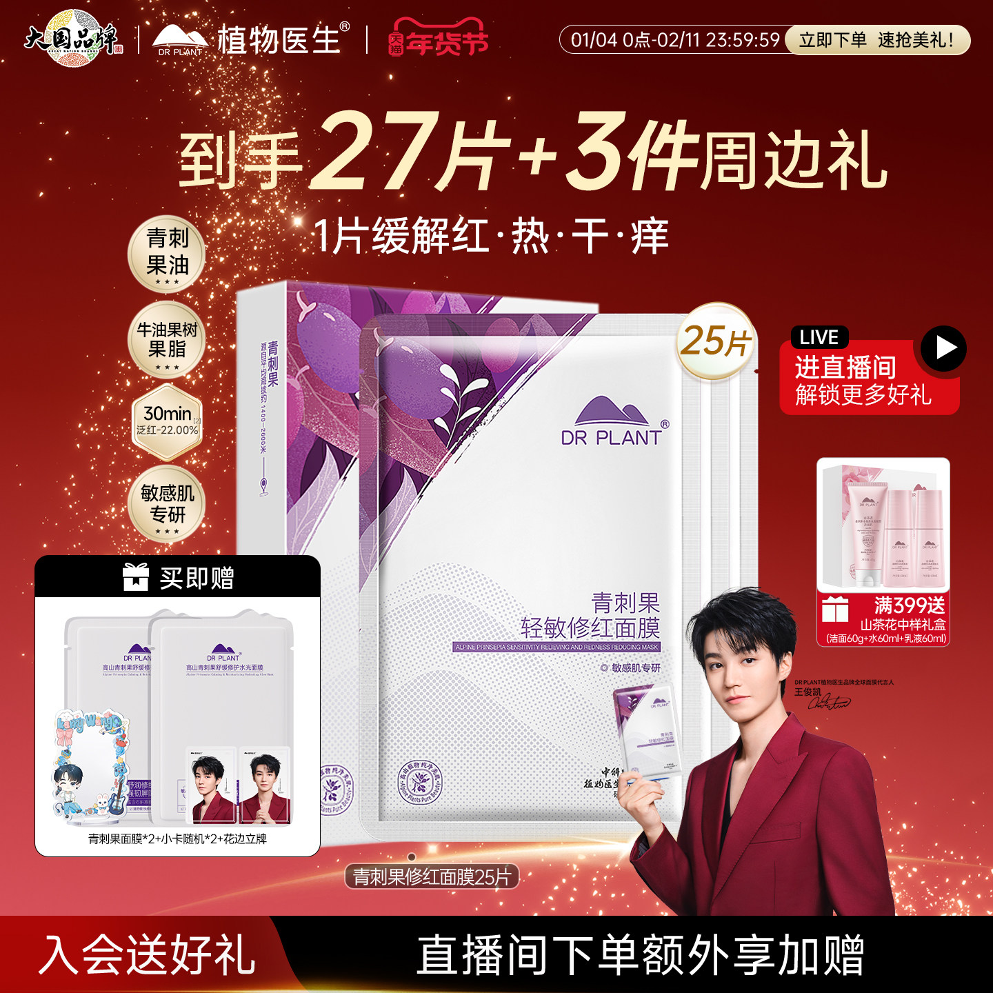 【王俊凯同款】植物医生青刺果轻敏修护水光面膜修红补水保湿正品