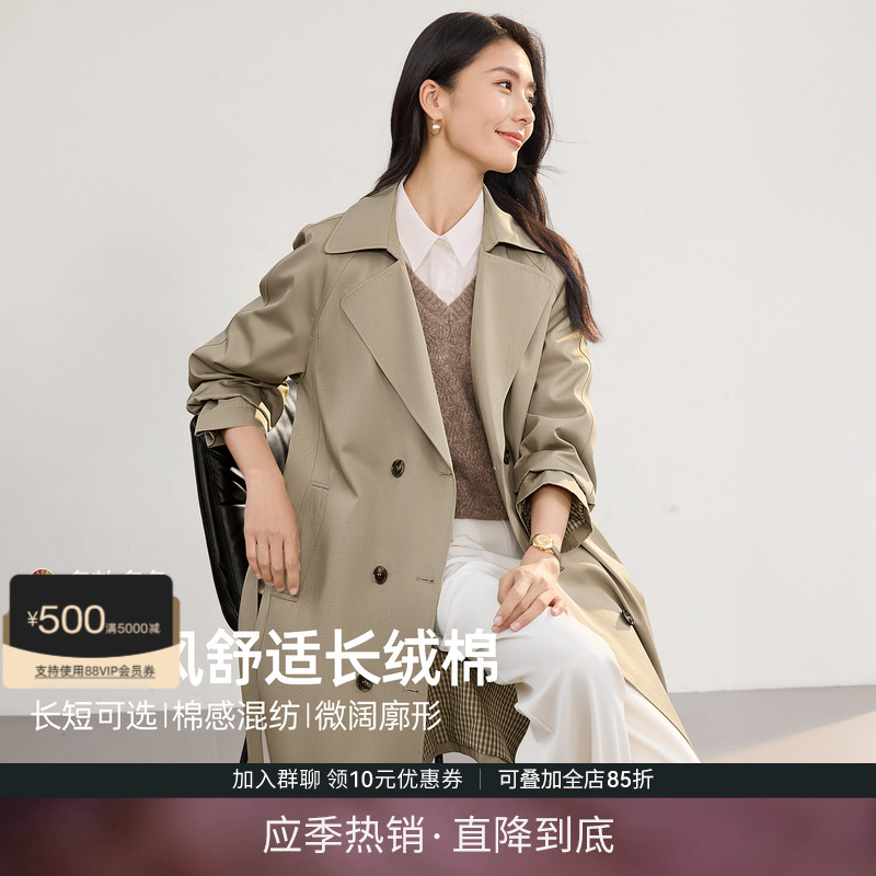 betu百图经典双排扣风衣女2025年秋季新款小个子中长款外套夹克