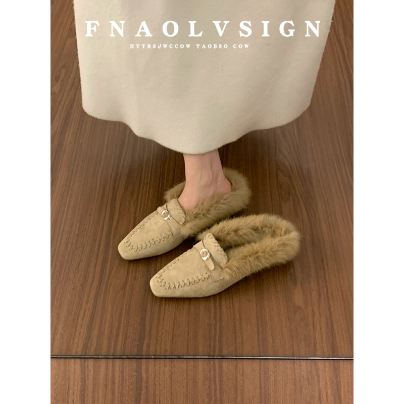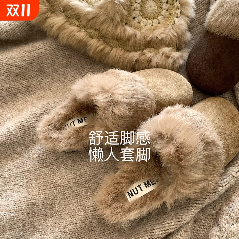 兔毛绒毛毛鞋女秋冬季平底加绒温柔高级感外穿豆豆鞋孕妇软底棉鞋