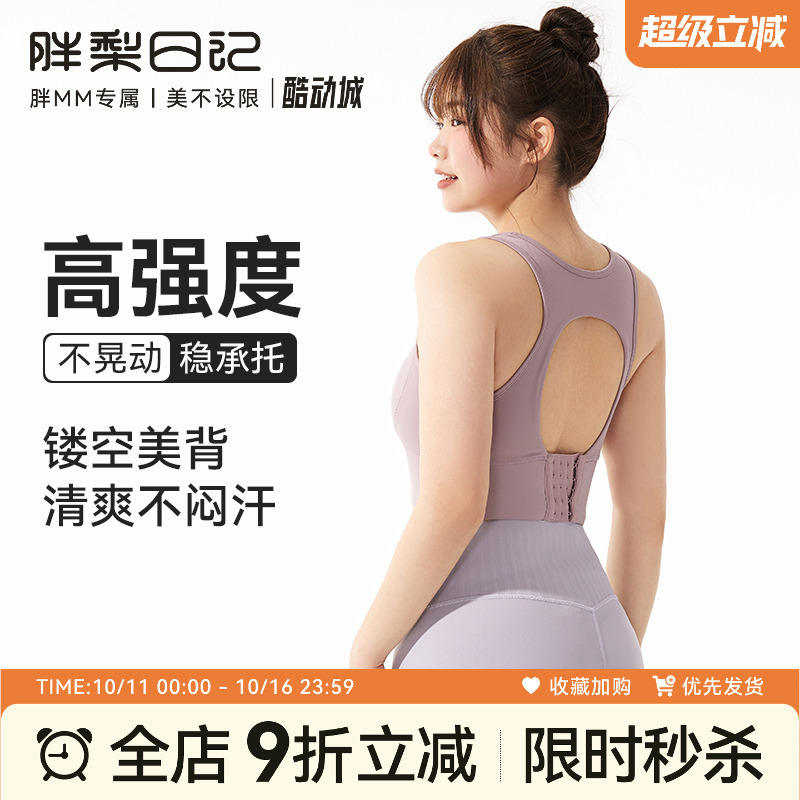 胖梨日记大码运动内衣女跑步聚拢防震高强度一体式胖MM健身文胸
