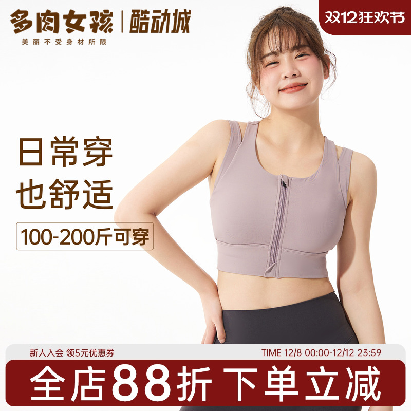 乐炼ing大码运动内衣女防震跳绳高强度胖mm前拉链健身跑步大文胸