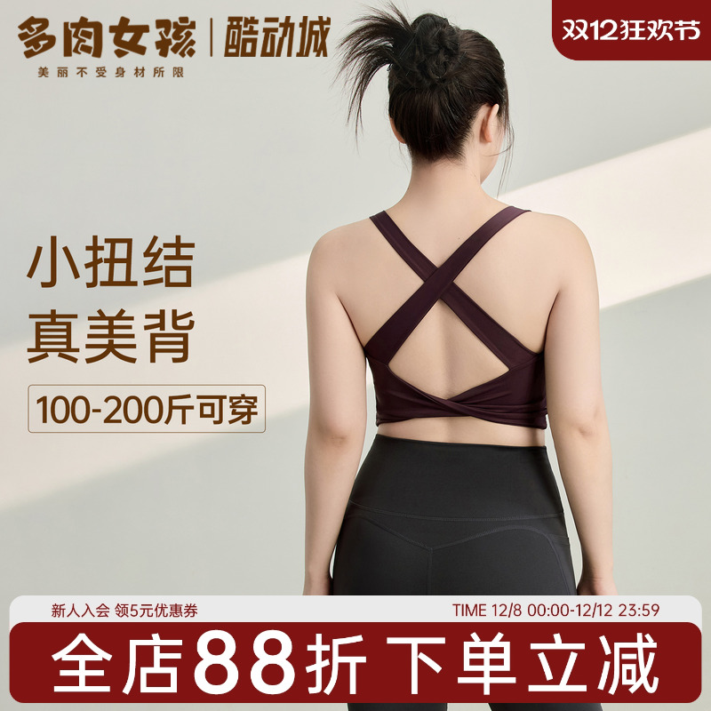 胖mm大码运动内衣女裸感一体式文胸跑步防震瑜伽健身扭结美背背心