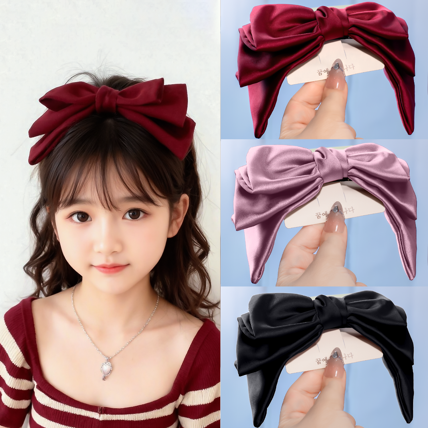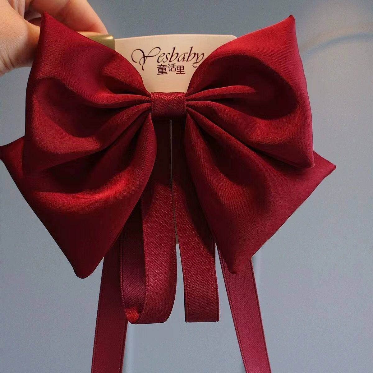 在逃公主缎面红色大蝴蝶结头饰儿童精致颅顶发夹后脑勺气质弹簧夹