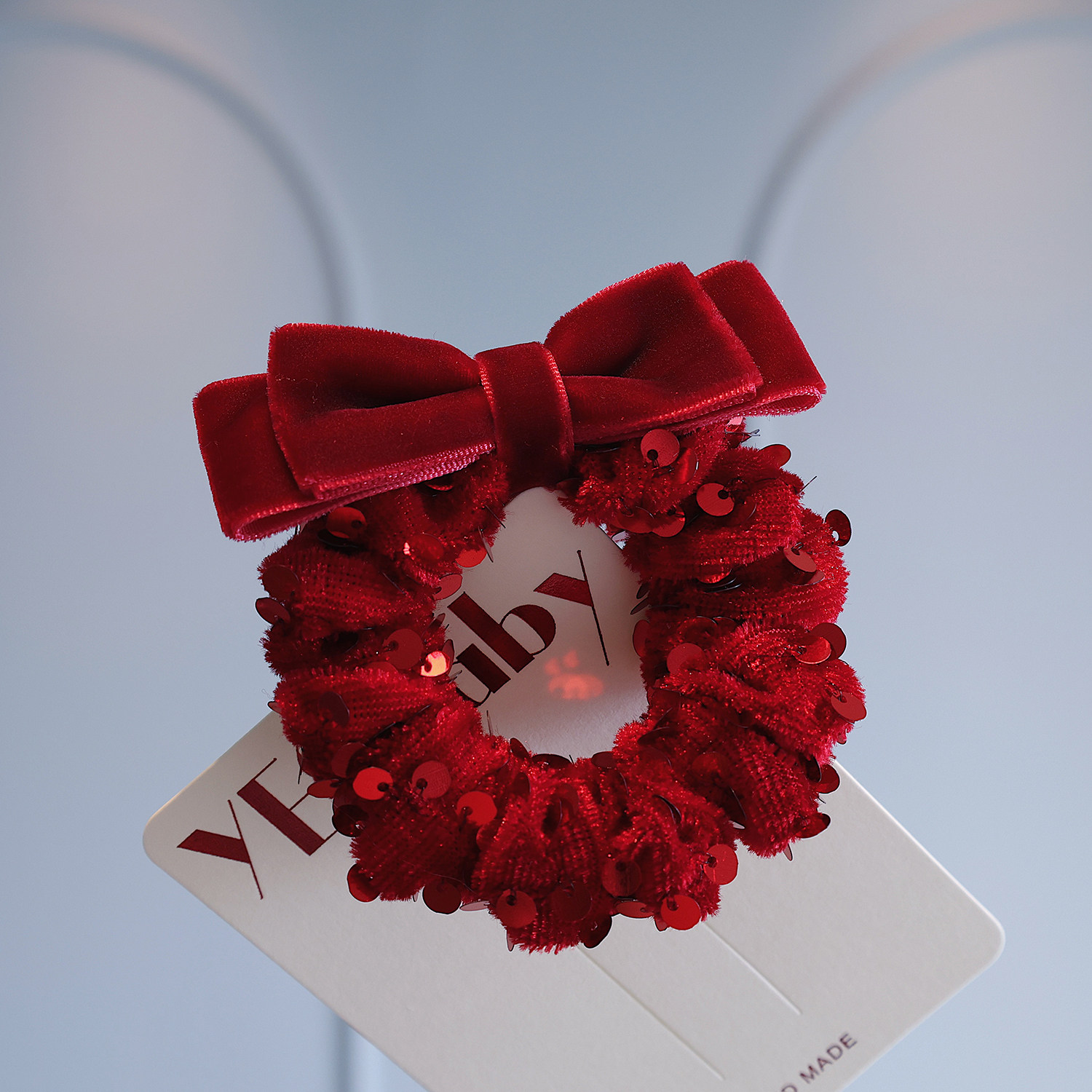 公主气质新年头饰丝绒亮片蝴蝶结小肠发圈儿童丸子头扎辫可爱皮筋