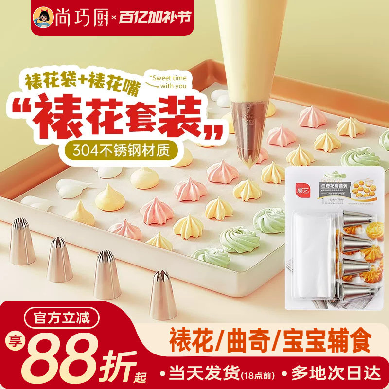 展艺裱花袋嘴全套挤奶油溶豆一次性烘焙工具大送婴儿宝宝辅食食谱