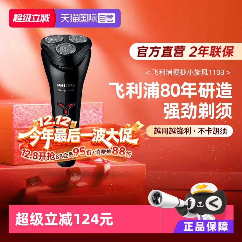 【自营】飞利浦S1103男士电动剃须刀全身水洗便携刮胡刀进口刀头
