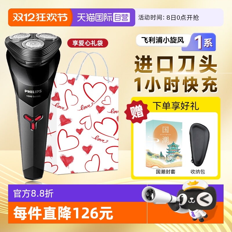飞利浦电动剃须刀男士胡须刀智能便携刮胡刀进口刀头男友圣诞礼物