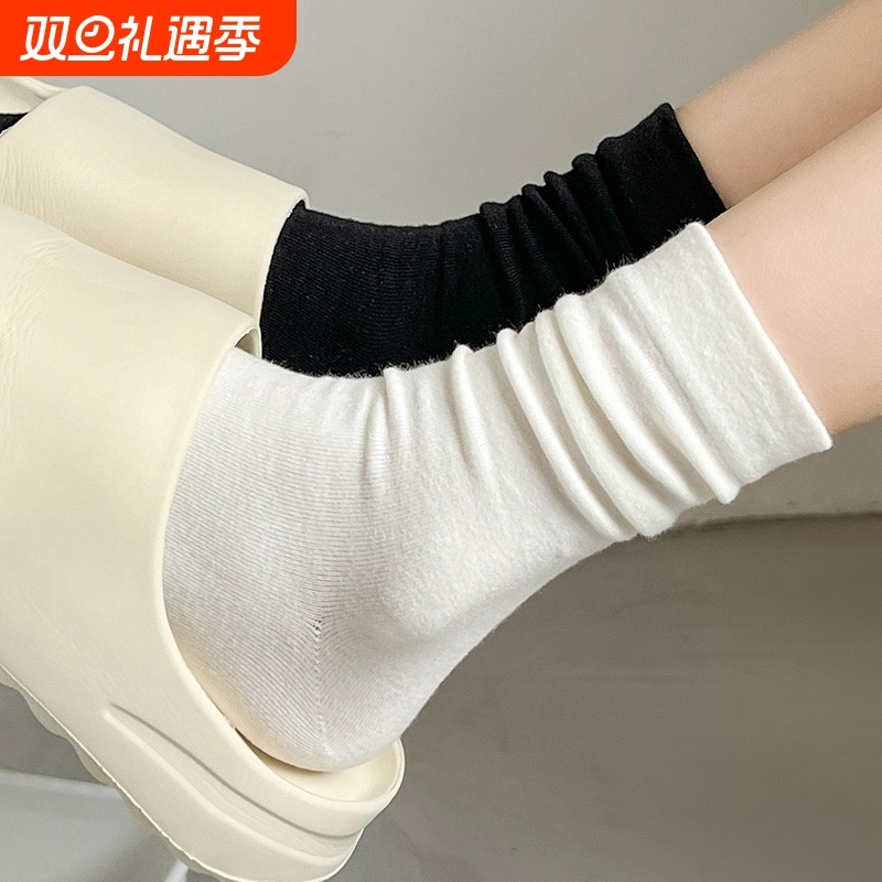 白色堆堆袜子女款秋冬季中筒纯棉黑色女士无骨2025新款爆款月子袜