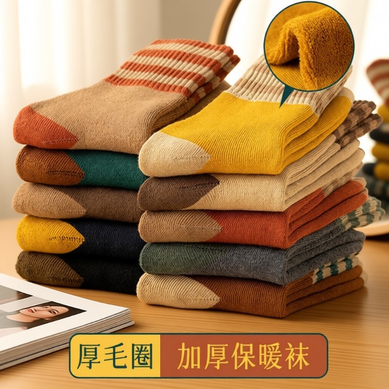 厚袜子女款秋冬季中筒袜加绒加厚保暖毛圈黑色长筒袜2025冬天长袜