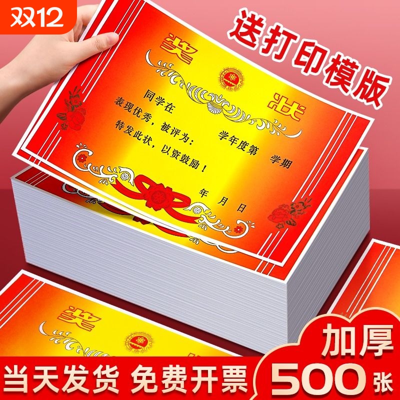 A4奖状纸120g双胶纸加厚铜板纸可打印A3有字无字奖状三好学生小奖状小学幼儿园期中期末毕业奖状100张200张