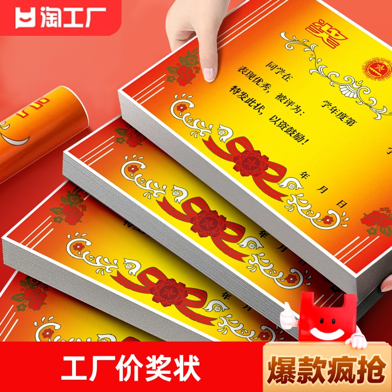 加厚a4小学生奖状8k/16k通用优秀三好学生奖状纸空白可打印定制作儿童证书教师专用初中奖励创意定做幼儿大