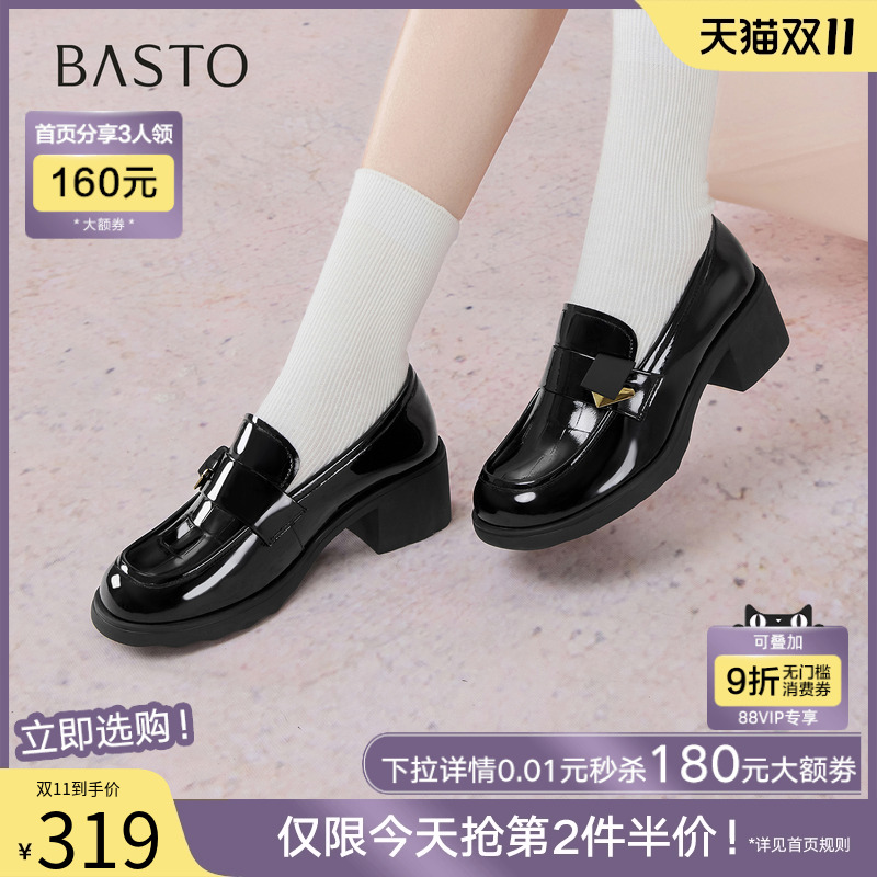 百思图2025秋季商场新款英伦乐福鞋通勤粗跟女深口单鞋O8138CA5