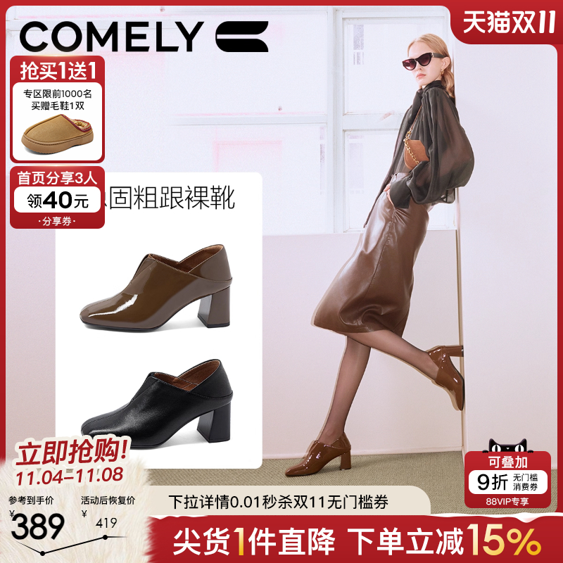 康莉商场同款小皮鞋女粗跟2025春季显瘦时尚简约百搭高跟单鞋