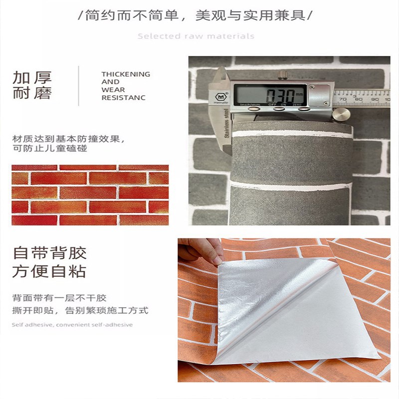 自粘墙纸复古砖纹墙贴防水防潮立体3d壁纸客厅店铺满铺防撞墙纸