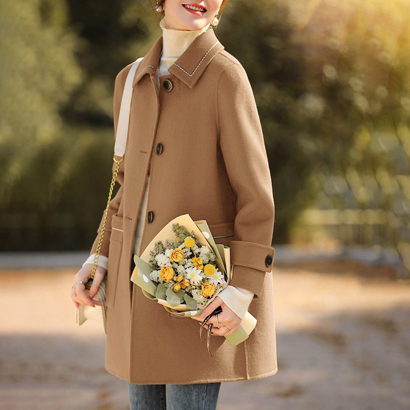 2025秋冬新款温柔风驼色毛呢外套女双面呢翻领气质大衣小个子显瘦