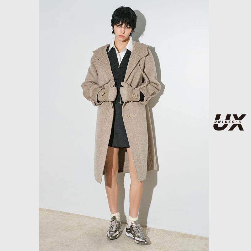 【昕怡粉丝专享】UX 冬季新款 驼色毛呢大衣女 时尚翻领外套上衣
