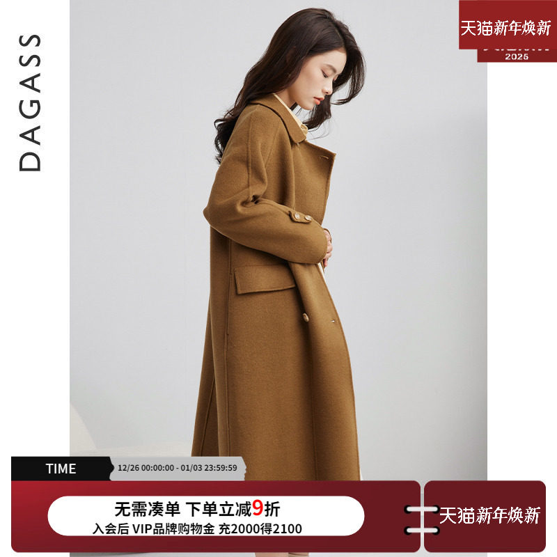 达佳诗驼色毛呢外套女新款气质通勤简约大衣秋冬小个子羊毛双面呢