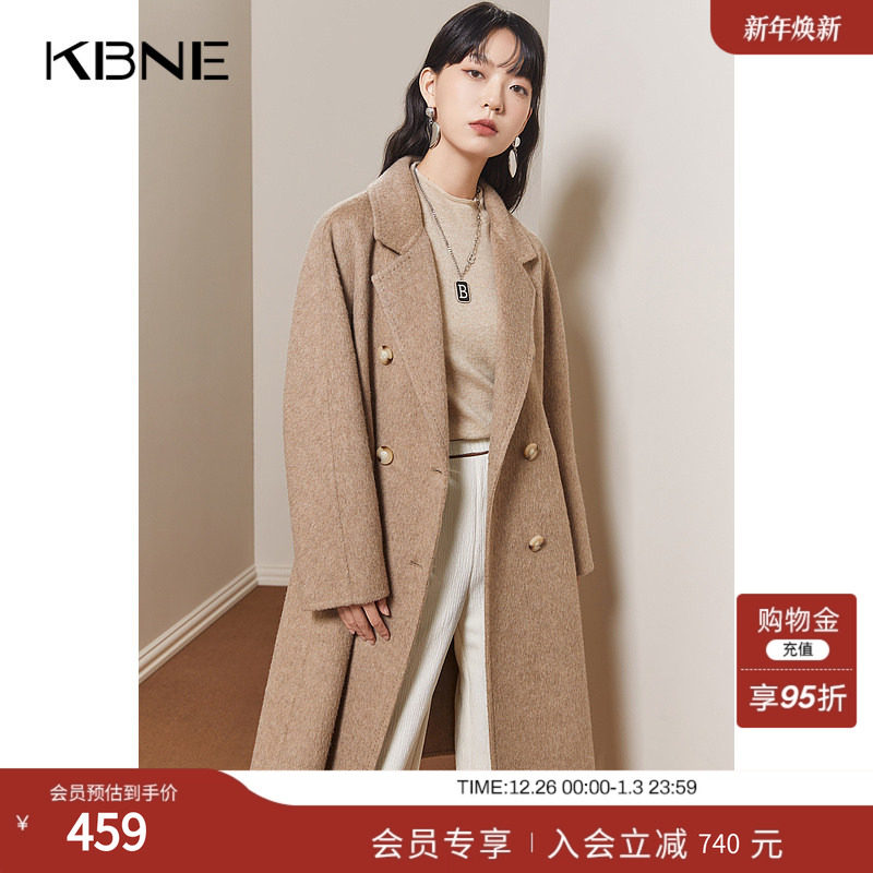 KBNE【商场同款】双面呢羊毛大衣女2024年秋冬新款高级感驼色毛呢
