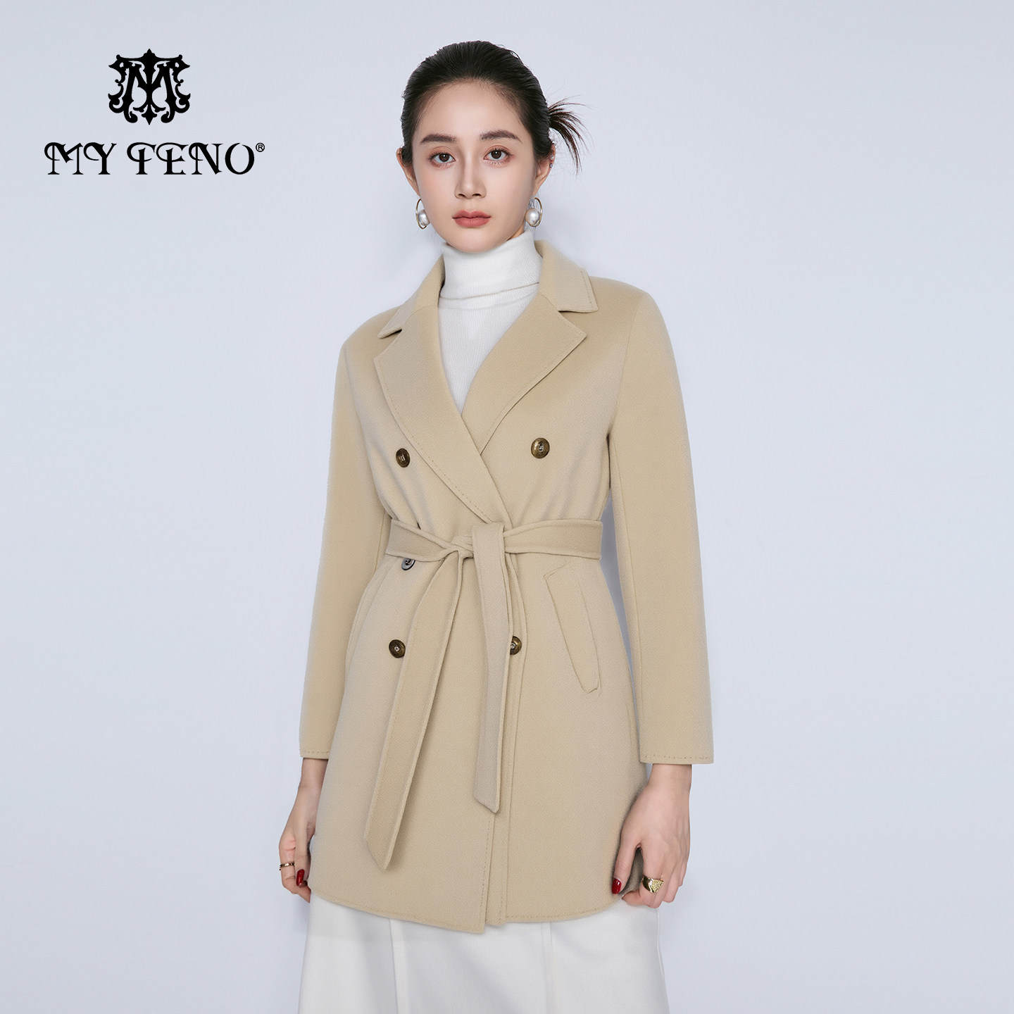 [绵羊毛]马天奴2025秋冬新款驼色毛呢大衣双排扣外套收腰带女百搭