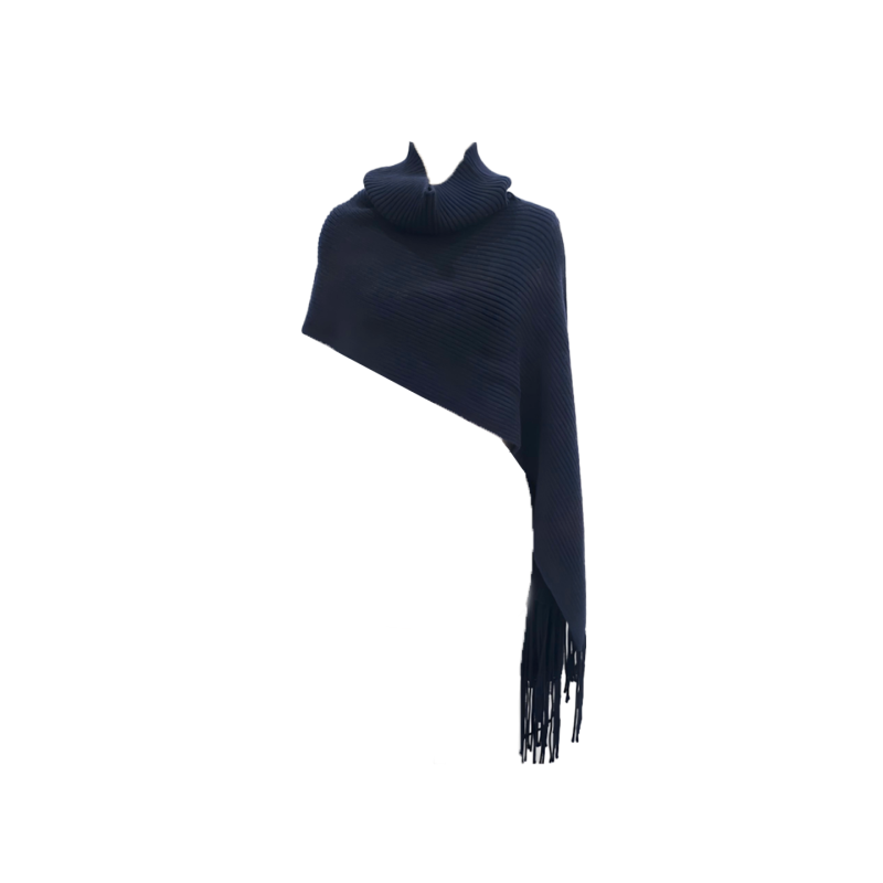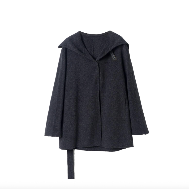 混深灰牦牛绒围巾披肩双面羊毛大衣女短款新款宽松高级感毛呢外套