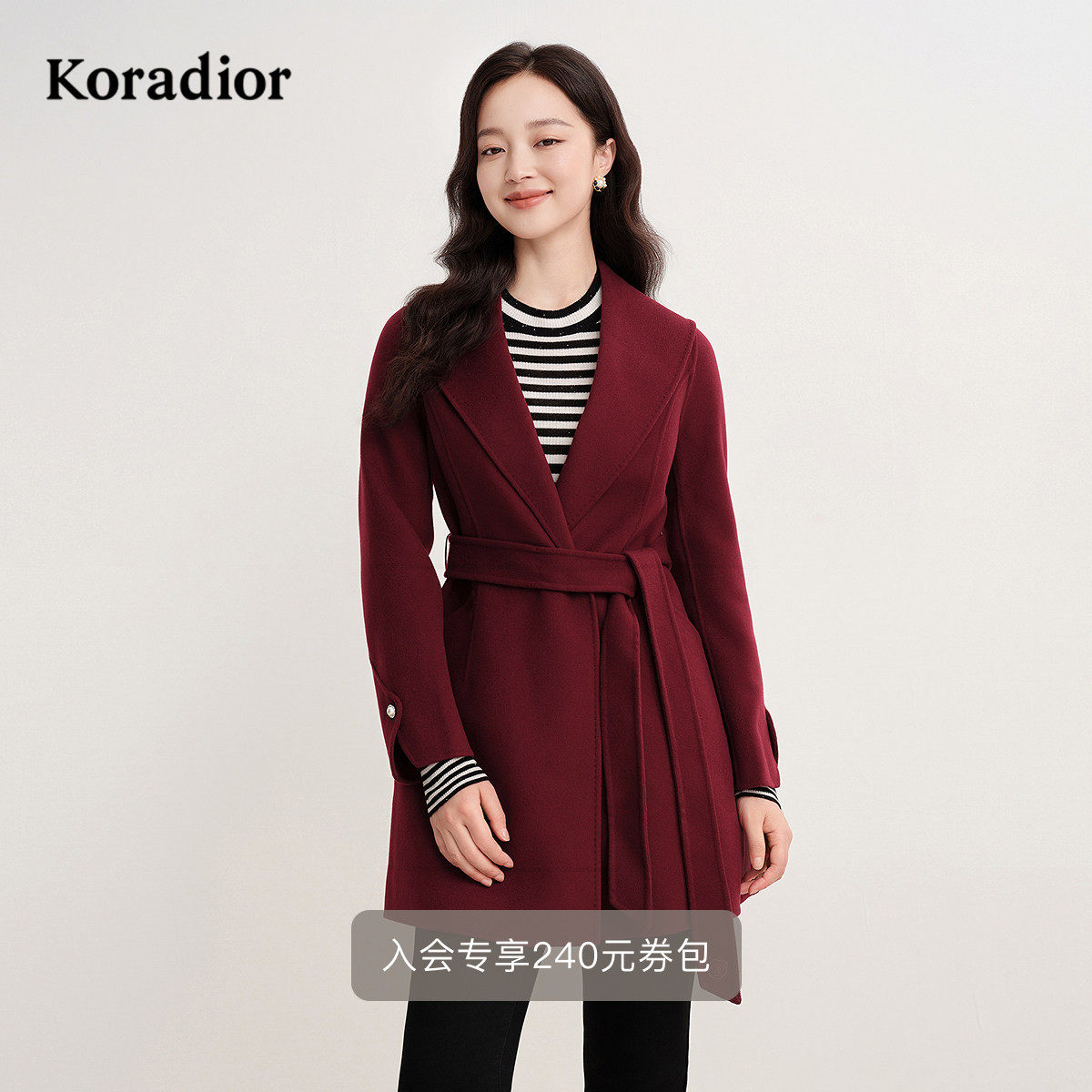 【瑰丽大衣】珂莱蒂尔冬季100绵羊毛双面呢大衣女中长款系带外套