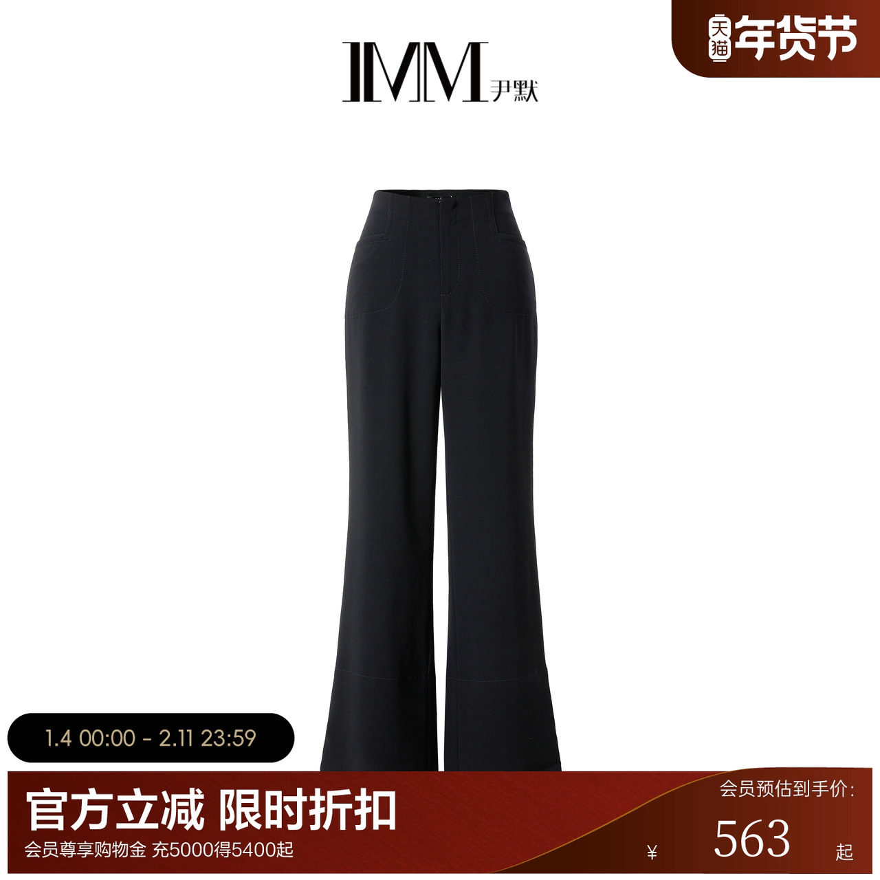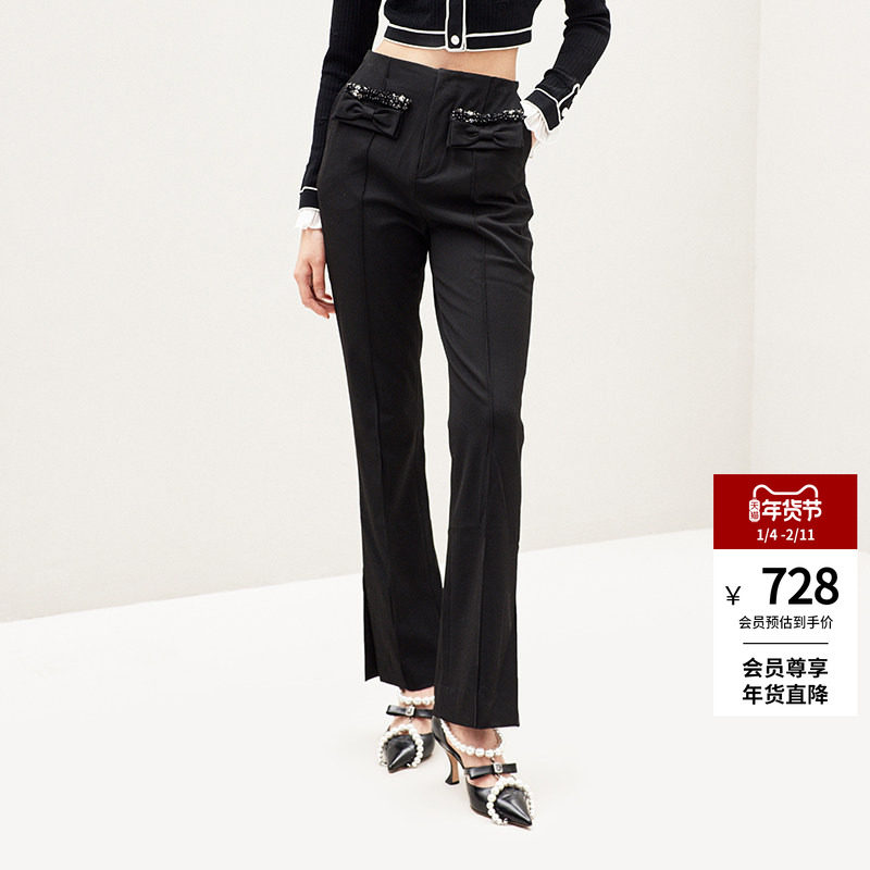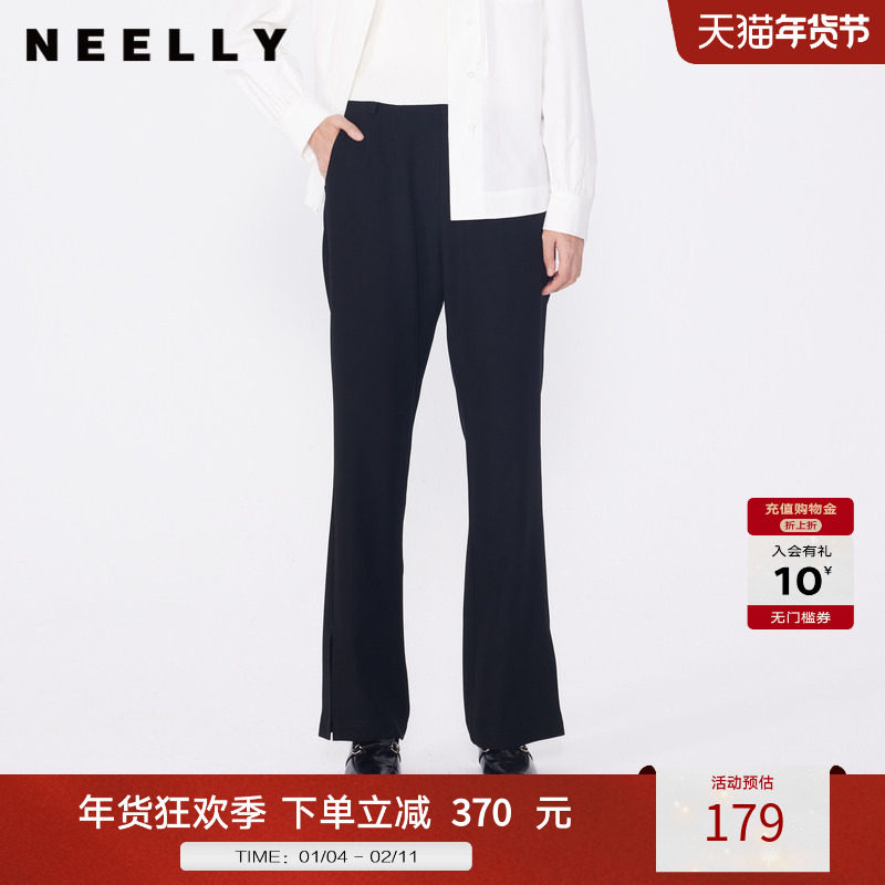 NEELLY纳俪商场同款秋冬新款黑色微喇裤女显瘦设计感开口通勤长裤