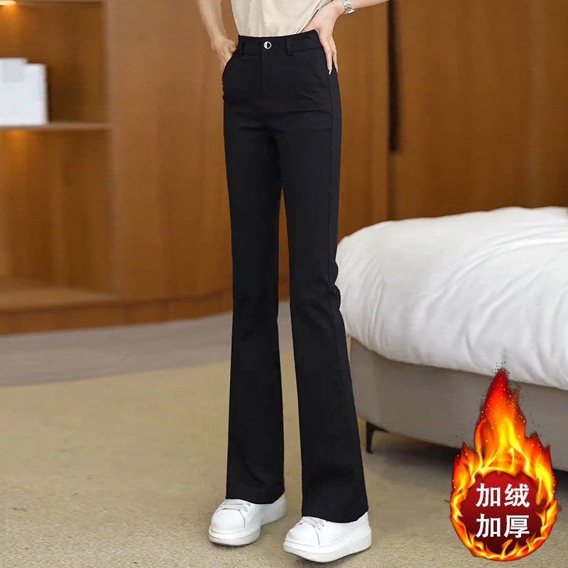 2025年春秋款加绒喇叭裤女垂感高腰休闲OL职业直筒修身黑色微喇裤