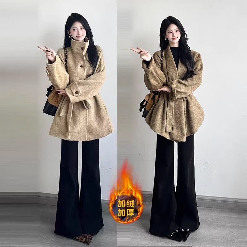 加绒加厚黑色微喇裤女2025秋冬新款小个子保暖显瘦西装马蹄喇叭裤
