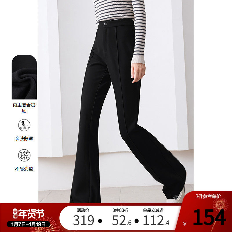 娅丽达加绒喇叭裤女裤子2025年秋冬新款西装裤休闲女裤黑色微喇裤