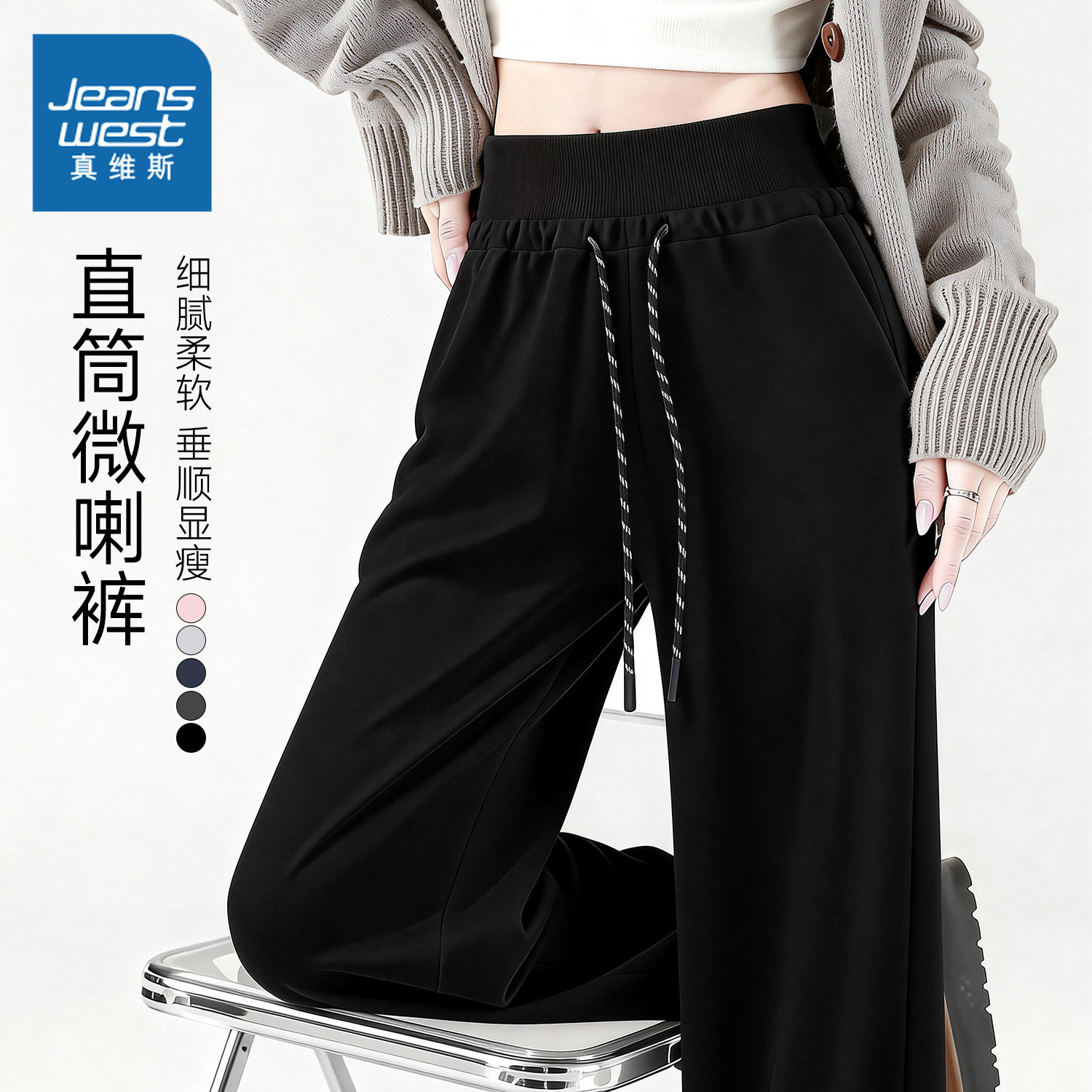 KMV真维斯黑色微喇裤女春季2026新款韩系慵懒休闲裤直筒阔腿裤子
